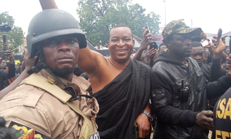 What began as a tense moment, with security men pushing through the throng, soon turned into jubilation after Chairman Wontumi ordered his guards to stop. He stood for a while, exchanging pleasantries and shaking hands with some mourners, sparking excitement among sections of the crowd.
