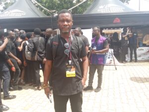 Arriving at 12:10 p.m., Wontumi’s presence quickly became a spectacle. Surrounded by heavily built security men, he struggled to make his way through the massive crowd of mourners who had gathered to pay their last respects to the revered Queen Mother.