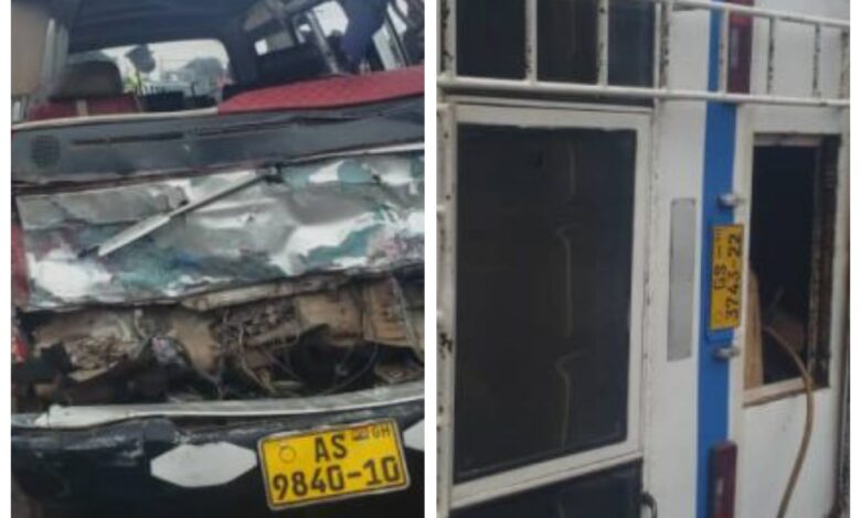 A tragic accident at Dichemso Plaza in the Kumasi Metropolis on Wednesday morning, September 17, 2025, has left four people in critical condition after a commercial Urvan bus collided with a school bus.