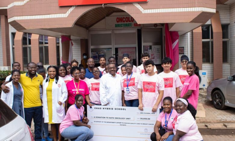 The ENAS Hybrid School community at Ahodwo Daban in Kumasi, has extended a helping hand to women battling breast cancer at the Komfo Anokye Teaching Hospital (KATH) in Kumasi with a cash donation of GH¢20,000.00.