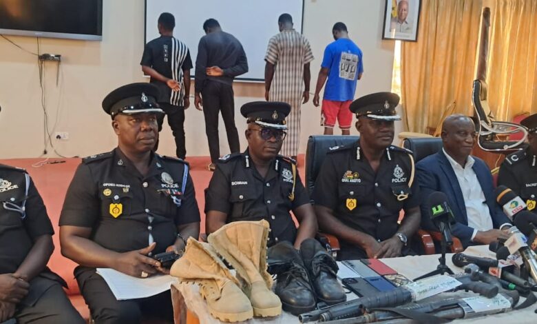 He disclosed that items retrieved from the suspects include two pump-action guns, 22 BB cartridges, five mobile phones—one of which belongs to a complainant—and an amount of GH¢5,400 in cash.