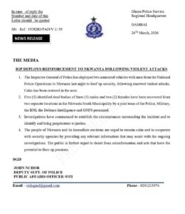 The statement was signed by the Oti Regional Police Public Affairs Officer, Deputy Superintendent of Police, John Nchor.