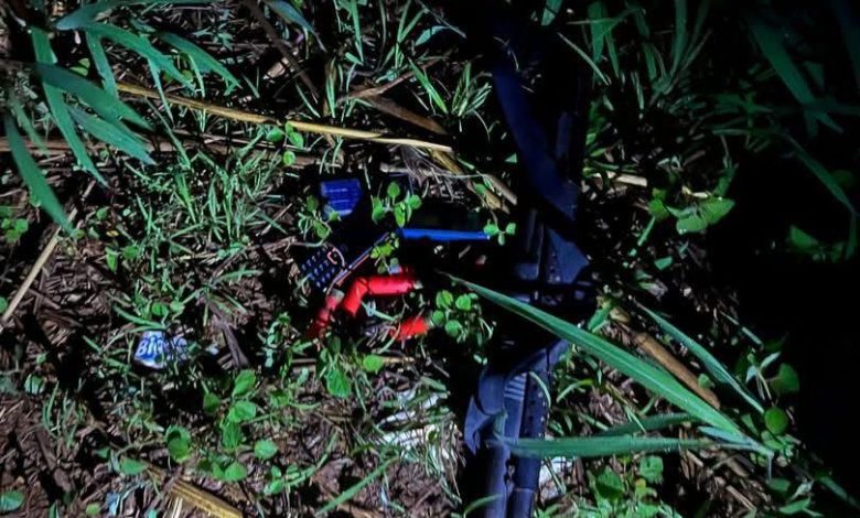 Items retrieved from the scene included a pump-action gun loaded with four live cartridges, two spent cartridges, and three assorted keypad mobile phones. Two additional live cartridges were also found in the pocket of the deceased suspect, along with a talisman tied around his waist.