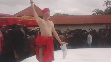 Mourners at the Manhyia Palace were left speechless when an albino man scaled the sacred Bodware during the Dote Yie…